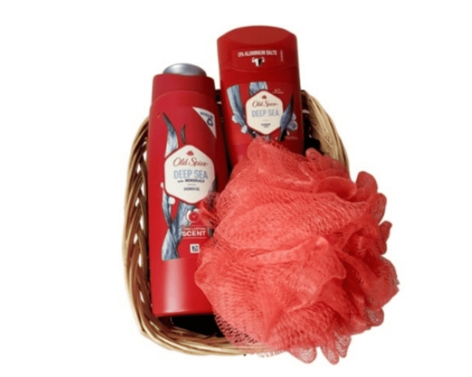 Complete self-care package: 50 ml roll-on, 250 ml shower gel, and a shower puff.